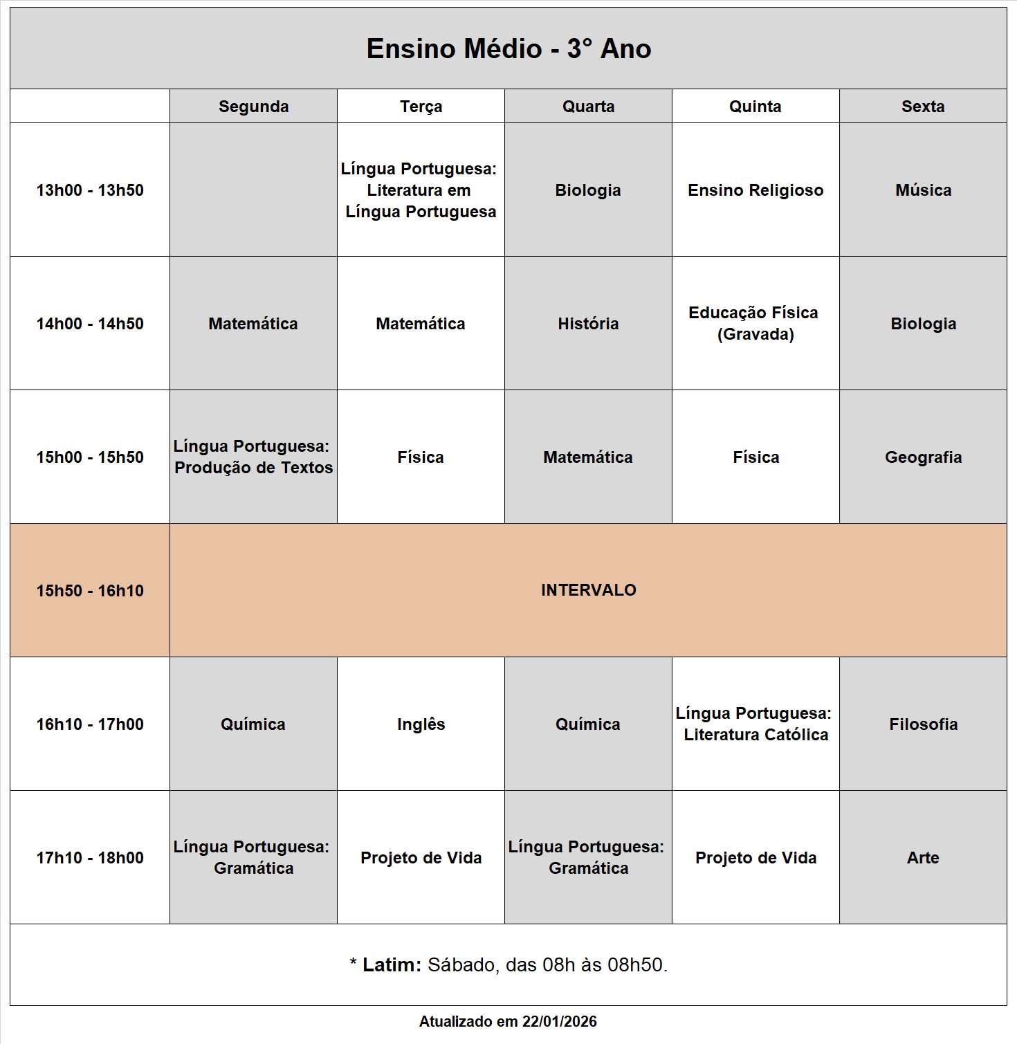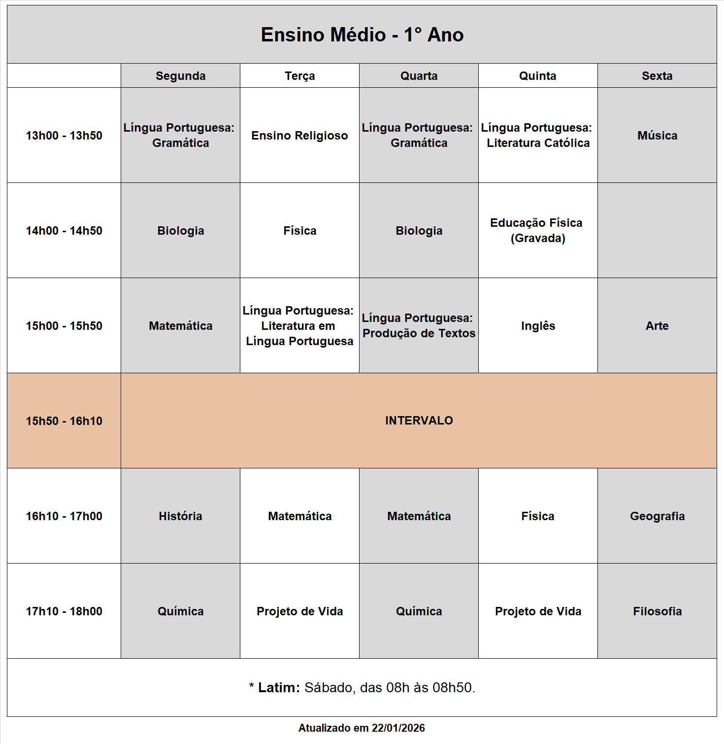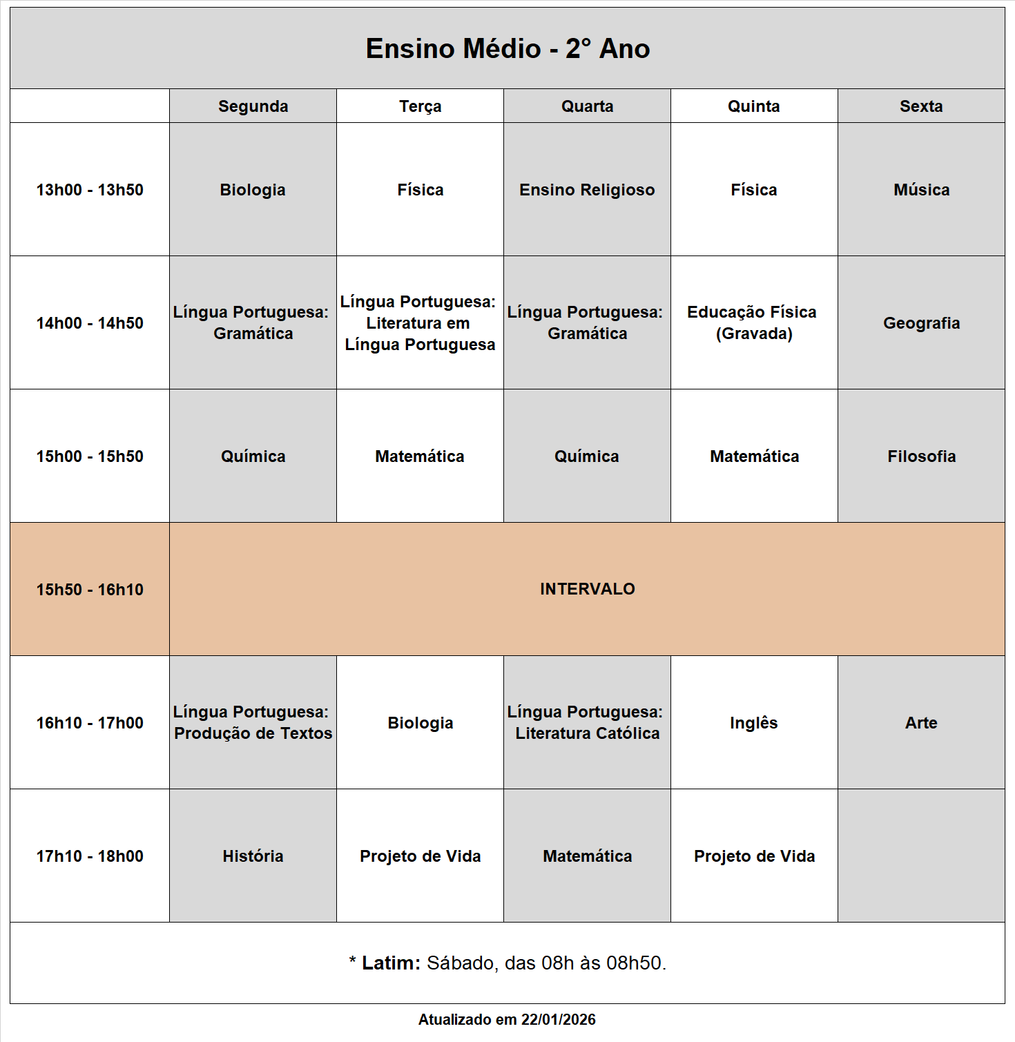 • Grade de Horários - Aulas Ao Vivo - 2026