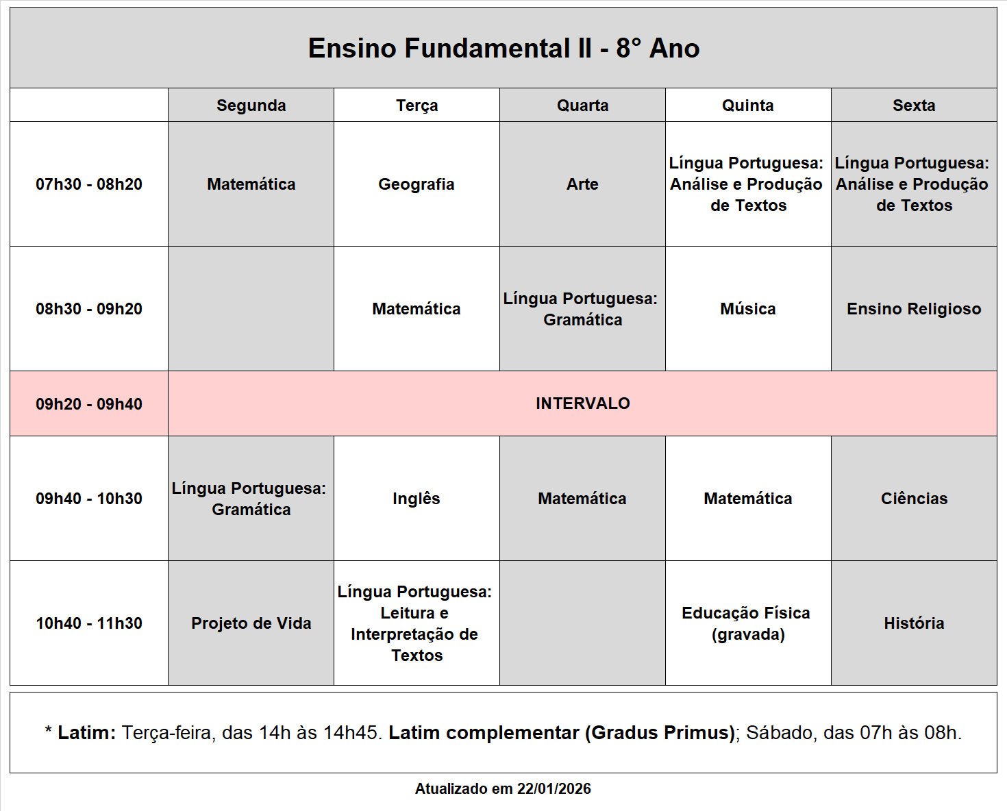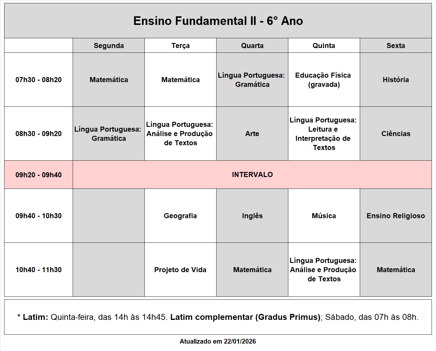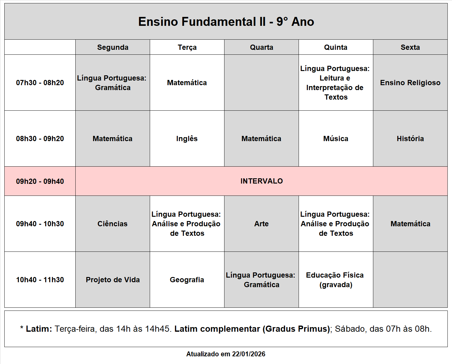 • Grade de Horários - Aulas Ao Vivo - 2026