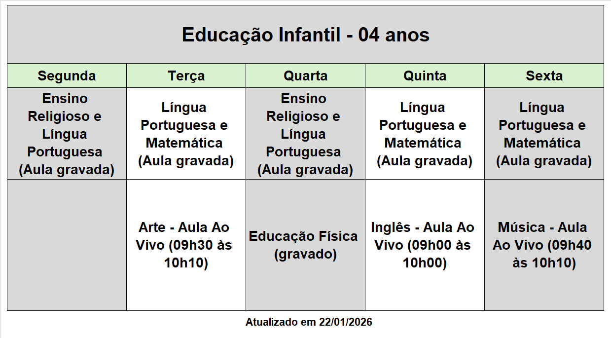 Educação Infantil, 3 anos - Apenas aulas gravadas